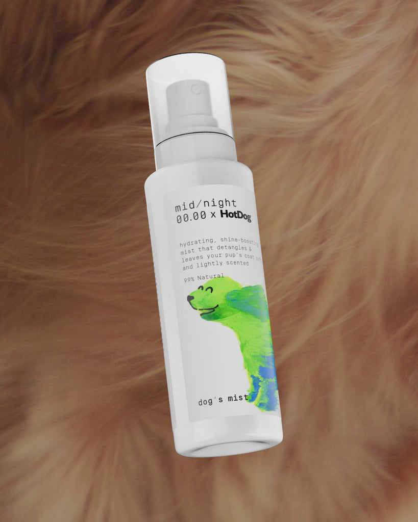 A leave-in hair mist (100ml) for dogs designed to hydrate, soften and refresh. Detangle gently, calm the skin, and leave your dog’s coat soft, shiny and beautifully scented.